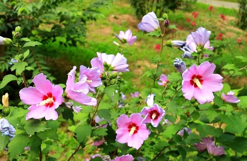 叢生木槿可以跟很多苗木搭配在一起來種植,比方說圓柏、花葉美人蕉、歐月、多季玫瑰、綠化竹子、雞血藤、藍花鳶尾以及金絲桃和海棠等等,這樣可以達到出不一樣的風(fēng)景。