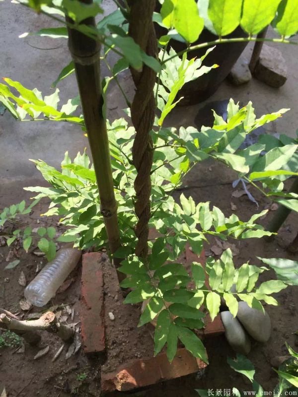 紫藤,樹體高0.4~2米高間,樹葉形態按照品種各不一樣有區別,有一些細長,有一些比較圓,紫藤花蕾顏色是增加,如國旗紅,紅色,鵝黃黃,淺白色等,開花的時間很長,花量大,每年是開花的季節時間段從6月下旬到8月,種子9~10月成熟,有較高的出芽能力。