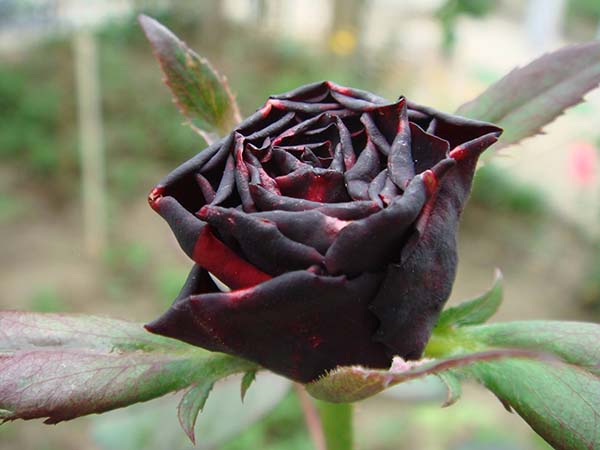 黑魔術(shù)和卡羅拉很像,唯一的不同是顏色,顏色是深紅,感覺(jué)有點(diǎn)偏黑,晝夜溫差不大的時(shí)候,花型好過(guò)卡羅拉,初看它并不顯眼,但細(xì)細(xì)品味才發(fā)現(xiàn)她黑得神秘美麗。常見(jiàn)的黑色月季切花有兩種,一種就叫“黑魔術(shù)”,花型規(guī)則美觀,厚厚花瓣上黑色中透著紅色,紅色中又透著黑色,有種厚厚的絨感,給人以華貴神秘之感。