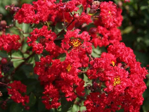紅火箭紫薇是紫薇中花色最鮮紅的品種之一,花鮮紅如國旗,花簇可達(dá)24英寸,花量大,花色艷麗,片植的色塊開花時一片火海,色彩艷麗。